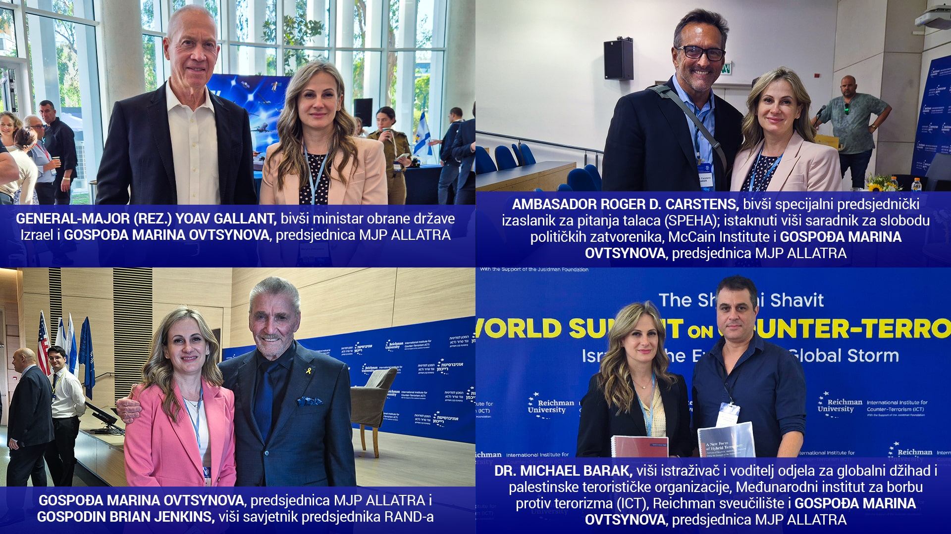 Kamila Marčenko — službena predstavnica Međunarodnog javnog pokreta „ALLATRA“ u Izraelu; Marina Ovtsynova — predsjednica Međunarodnog javnog pokreta „ALLATRA“; profesor Uriel Reichman — osnivač, počasni predsjednik i predsjednik upravnog odbora Sveučilišta Reichman; pukovnik Sean Morrow — direktor Centra za borbu protiv terorizma (CTC) na Vojnoj akademiji SAD-a u West Pointu; Gregory D. LoGerfo — vršitelj dužnosti koordinatora Ureda za borbu protiv terorizma pri State Departmentu SAD-a — na Svjetskom samitu Shabtai Shavit o borbi protiv terorizma