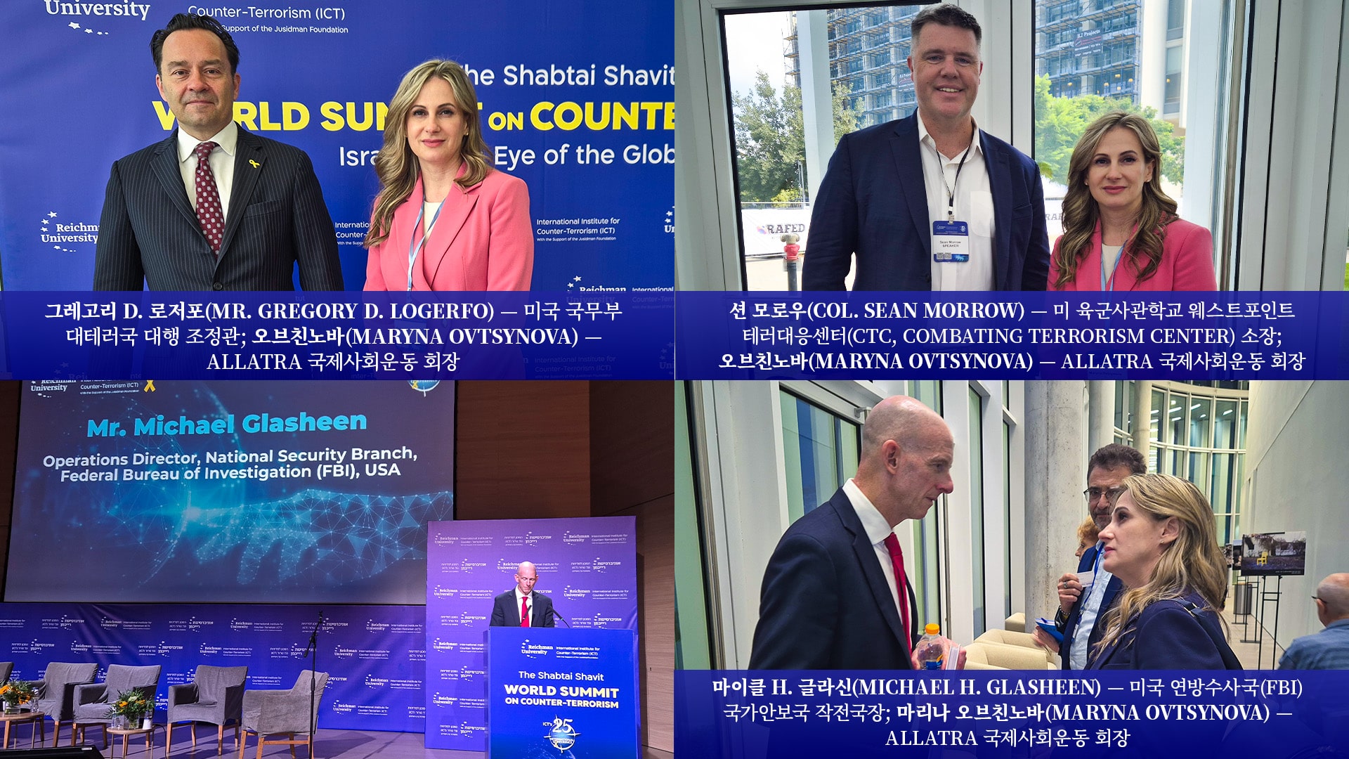 그레고리 D. 로저포(Mr. Gregory D. LoGerfo) — 미국 국무부 대테러국 대행 조정관; 션 모로우(Col. Sean Morrow) — 미 육군사관학교 웨스트포인트 테러대응센터(CTC, Combating Terrorism Center) 소장; 마이클 H. 글라신(Michael H. Glasheen) — 미국 연방수사국(FBI) 국가안보국 작전국장; 마리나 오브친노바(Maryna Ovtsynova) — ALLATRA 국제사회운동 회장, 2025 샤브타이 샤비트 세계 테러대응 정상회의(Shabtai Shavit World Summit on Counter-Terrorism)에서