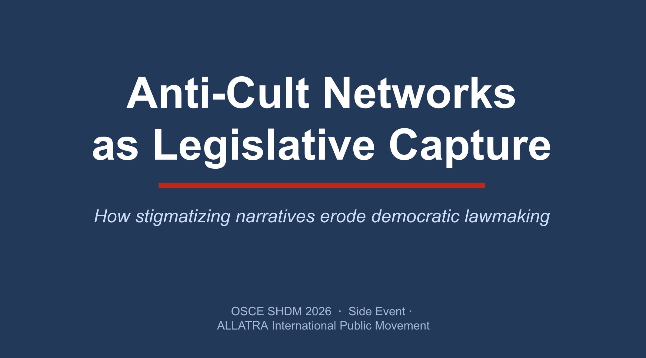 The side event titled “Anti-Cult Networks as Legislative Capture: How Stigmatization Erodes Democratic Lawmaking” focused on the activities and narratives associated with the international anti-cult network, rooted in Russia, and their impact on democratic institutions in various countries.