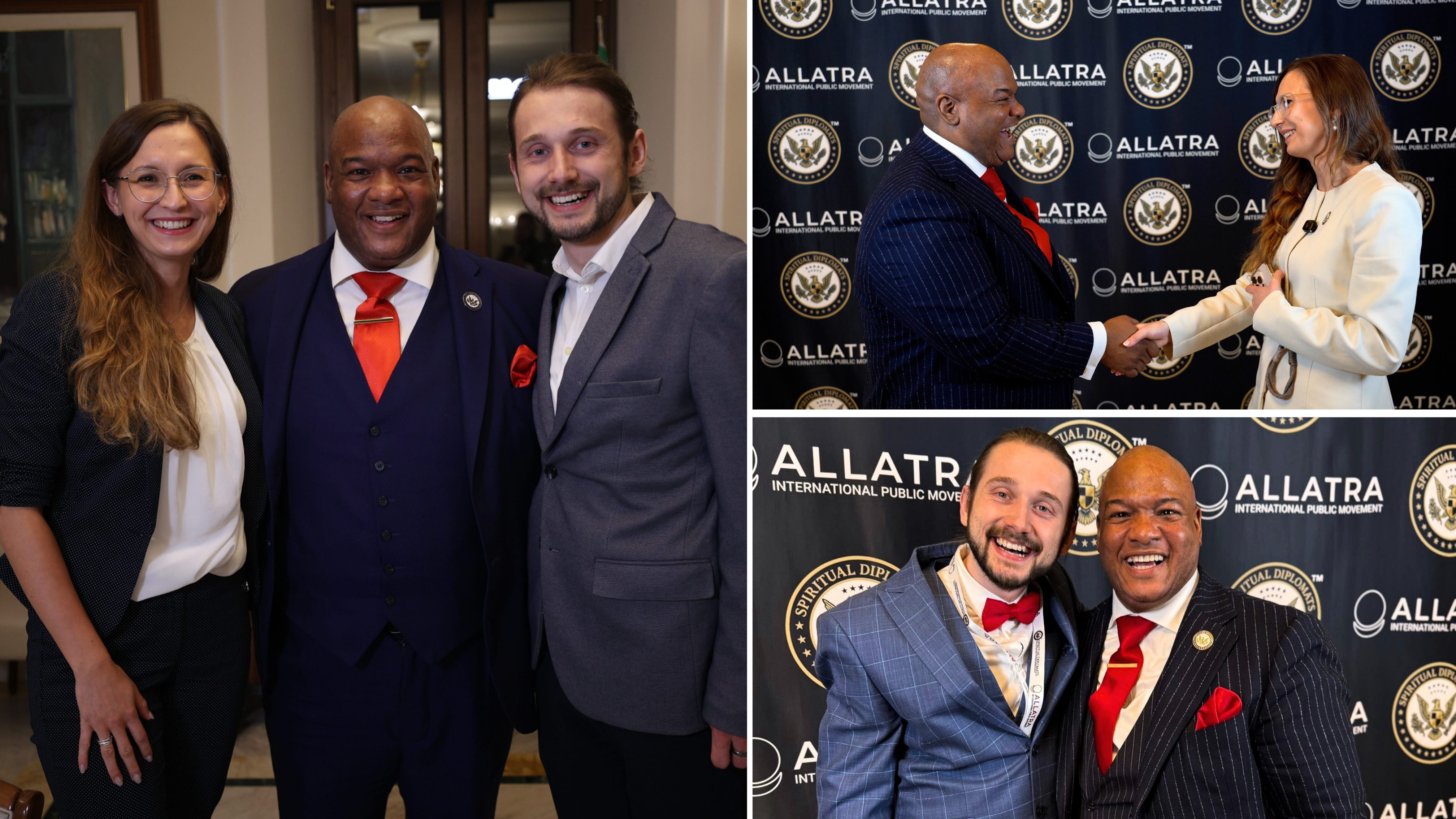 Pastor Mark Burns, spiritual advisor to U.S. President Donald Trump, Chairman of Spiritual Diplomats, with Marketa Vackova, ALLATRA IPM volunteer, independent investigative journalist, and David Bail, Czech blogger and writer