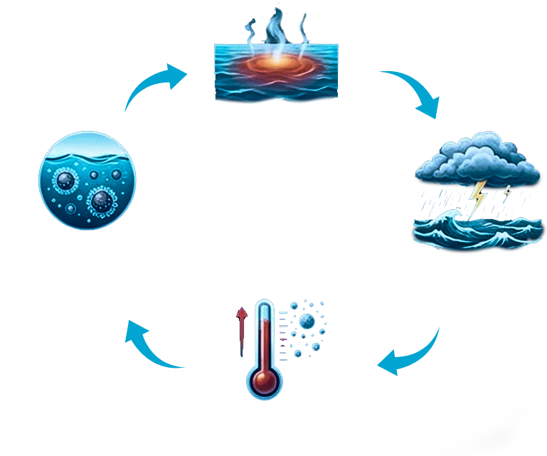 Nanoplastics in the atmosphere alter cloud formation, precipitation, and storm patterns, while oceanic plastics accelerate warming. They act as a previously unaccounted-for climate driver, exacerbating extreme weather.